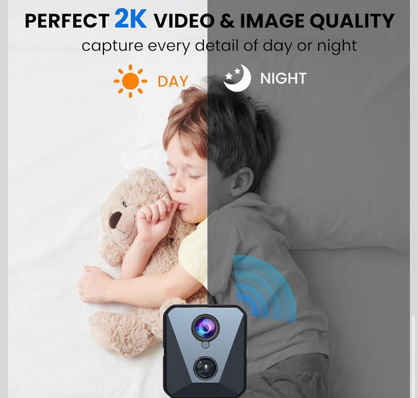 Security Camera, 4K HD Mini Nanny Cam for Home with Night Vision, WiFi Indoor Camera, 100 Days Long Battery Life, Motion Detection, Remote Viewing, Wireless Surveillance Cam