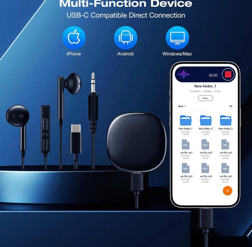 【Ample Capacity with 128GB Storage & Dual Connectivity】Store 500+ hours of audio with 128GB Storage.USB-C for seamless file transfers and five-button wired earphones pairing.Enjoy extensive recording time with built-in memory and support for external microSD cards, allowing you to store hundreds of hours of audio without worrying about running out of space